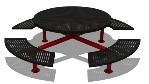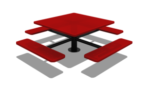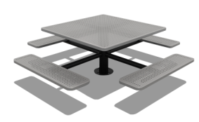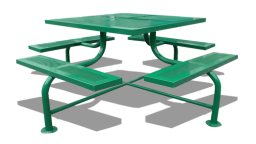 Mesas de picnic marca Monopark, fabricadas de acero al carbón calibre 14, tubo rolado de 2”, pintura electroestática horneada, ideales para uso rudo y climas extremos.